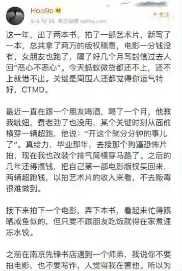在降温的秋夜,我点开了这个人的微博主页。其中一篇文章,几乎就像是遗书。