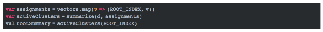 在上述代码中,第一行给每个向量加上一个索引,用以标明簇在最终生成的树上的深度,ROOT_INDEX的值为1。summarize方法计算误差平方和,我们来看看它的实现。