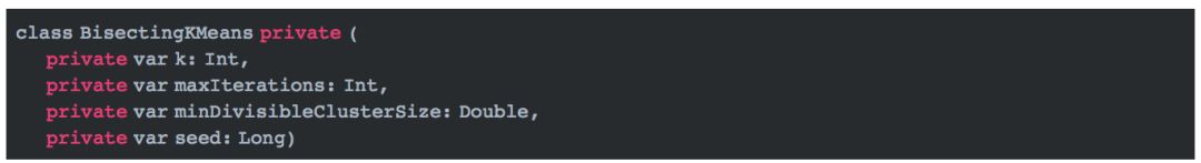 spark在文件org.apache.spark.mllib.clustering.BisectingKMeans中实现了二分k-means算法。在分步骤分析算法实现之前,我们先来了解BisectingKMeans类中参数代表的含义。