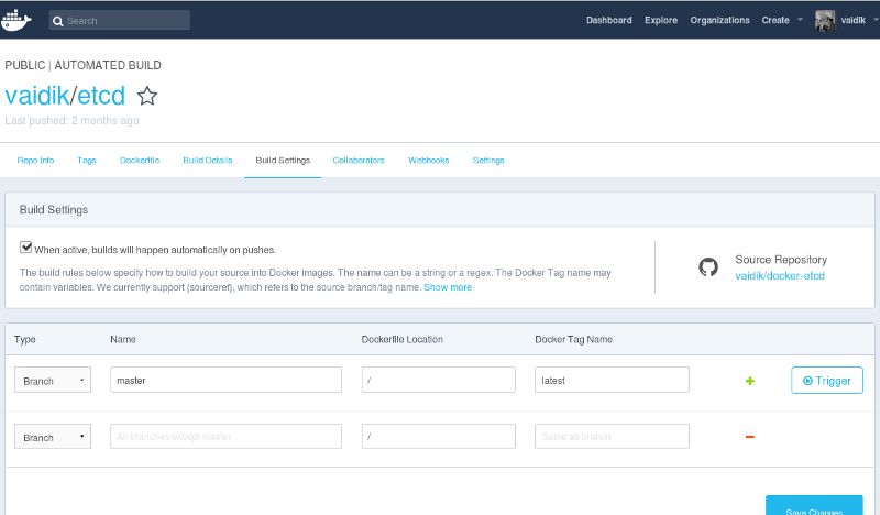 Automated Builds 的工作原理是我们必须在 Docker Hub 上配置它以指定 Docker 上下文的路径(即 Dockerfile 的路径),从该 Dockerfile 构建镜像并打上自己的标记。这意味着从仓库构建的每个镜像,必须在唯一路径上存在 Dockerfile。这很快就会成为一个问题。