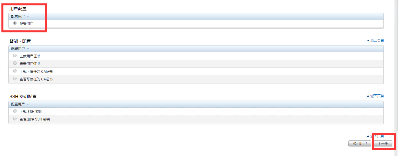 同样的,如果要添加新的管理用户,可在最初的界面点击数字“3”,然后选择“配置用户”--“下一步”