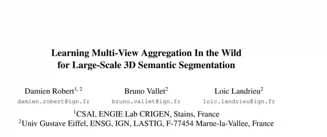 最近关于3D语义分割的工作提出利用图像和点云之间的协同作用,通过一个专用的网络处理每个模态,并将学习到的2D特征投影到3D点上。合并大规模点云和图像提出了几个挑战,如构建点和像素之间的映射,以及在多个视图之间聚合特征。目前的方法需要网格重建或专门的传感器来恢复遮挡,并使用启发式选择和聚集可用的图像。相反,我们提出了一个端到端可训练的多视图聚合模型,利用3D点的观看条件来合并在任意位置拍摄的图像的特征。我们的方法可以结合标准的2D和3D网络,在不需要着色、网格化或真实深度地图的情况下,优于彩色点云和混合2D/3D网络上运行的3D模型。我们在S3DIS (74.7 mIoU 6-Fold)和KITTI360 (58.3 mIoU)上设置了大规模室内外语义分割的最新技术。我们的流程可以访问 https: //github.com/drprojects/DeepViewAgg,只需要原始3D扫描和一组图像和姿势。
