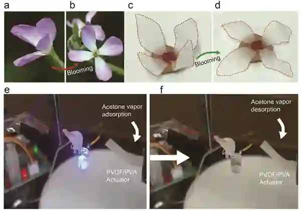 智能薄膜定向卷曲,模拟花朵运动及在溶剂氛围中的持久运动(由上至下)