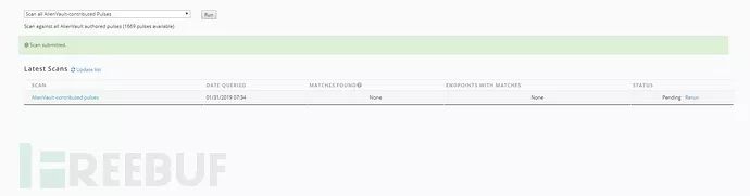 5.执行扫描,可选择多种扫描方式,包括基于可选pulse的、yara策略的、基于所有策略等、基于订阅更新的等,我们先选择所有策略运行,可通过history查看扫描记录和风险内容。
