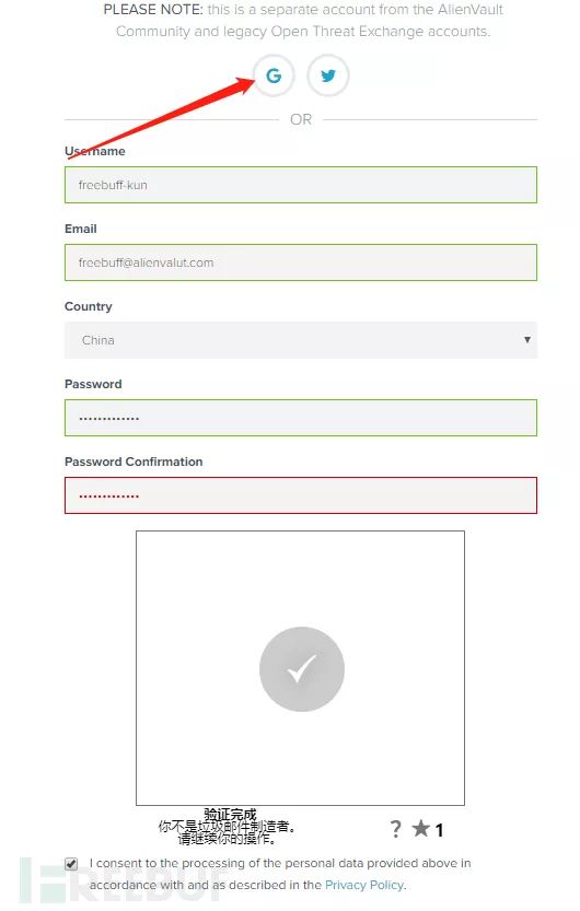2.在主页的右上角,点击注册。填写出现的表单,输入以下数据:
