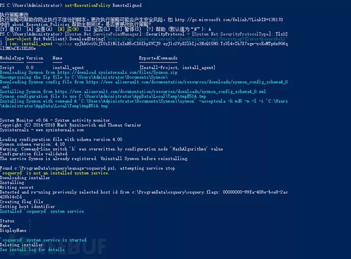1.首先,下载并安装AlienVault代理到您想要监控的Windows或Linux设备上。本文以windows为例。注意:windows使用powershell方式安装,支持3.0以上版本。