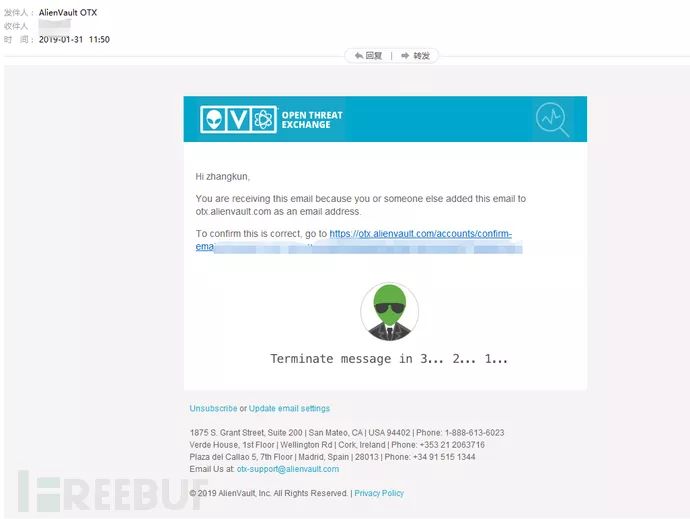 3.收到邮件后,单击带您到OTX确认页面的链接,然后单击Confirm。这将把您带到OTX主页(https://otx.alienvault.com/dashboard/new/),在那里您将看到所有当前的脉冲活动;