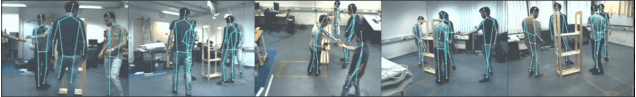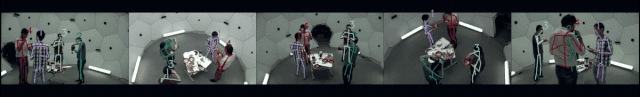 该方法在 Campus 和 Shelf 数据集上结果都得到大幅提升。即使在存在非常多的遮挡的场景下,VoxelPose 依然能够稳定估计出所有人的姿态。这是我们第一次看到基于计算机视觉的方案能够在复杂的场景里进行准确的姿态估计和跟踪。下面的两个视频展示了 VoxelPose 在公开数据集上的测试结果(值得注意的是我们并没有在这些场景下进行训练)。此外,该方法也被应用于微软与零售商店相关的产品中。