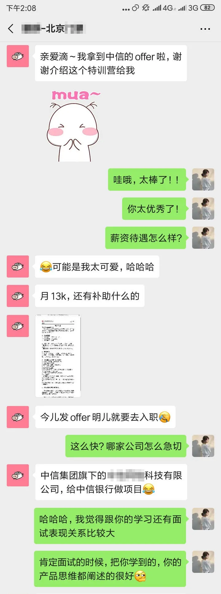 其实我还算挺幸运的,在课程结束后,就因为求职作品获得中信集团的面试机会,在通过重重考核后拿到了产品offer,薪资13k,也比之前的工作高得多,这对刚入行的我来说,是非常宝贵的成长机会。