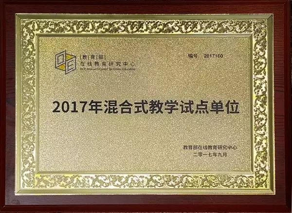 图为教育部在线教育研究中心颁发的获奖铭牌