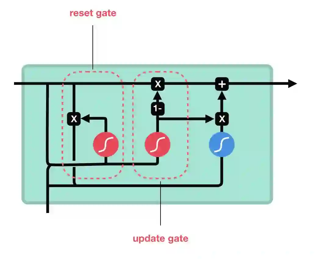 更新门的作用类似于 LSTM 的遗忘门和输入门。它同时决定丢弃什么旧信息,添加什么新信息。而重置门是一个用来决定要忘记多少过去信息的门。