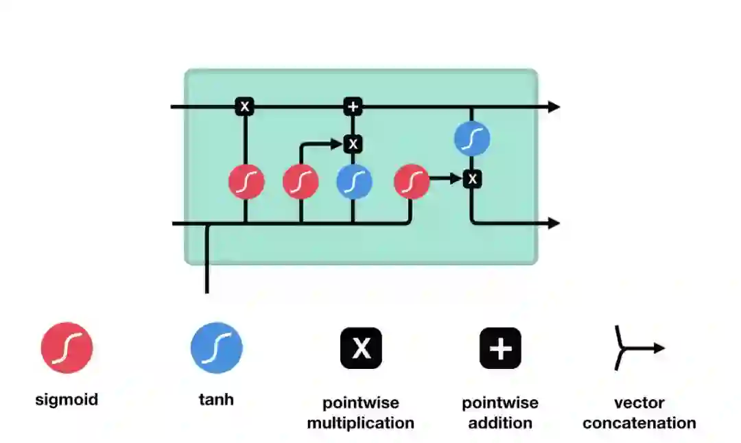 门控机制主要由 sigmoid 激活函数构成,sigmoid 激活函数类似于 tanh 激活函数,它会将数值控制在 0 到 1 之间,而不是-1 到 1。这有助于更新或丢弃数据,因为任何数乘以 0 都是 0,这将导致数值消失或被「遗忘」。任何数字乘以 1 都是其本身,因此这个值不变或者「保存」。网络可以知道哪些数据不重要,可以被遗忘,或者哪些数据需要保存。