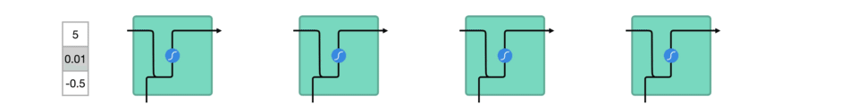tanh 函数确保值保持在-1 到 1 之间,从而控制神经网络的输出。下图可以看到数值是如何借助 tanh 函数在不同的时间步之中保持稳定。