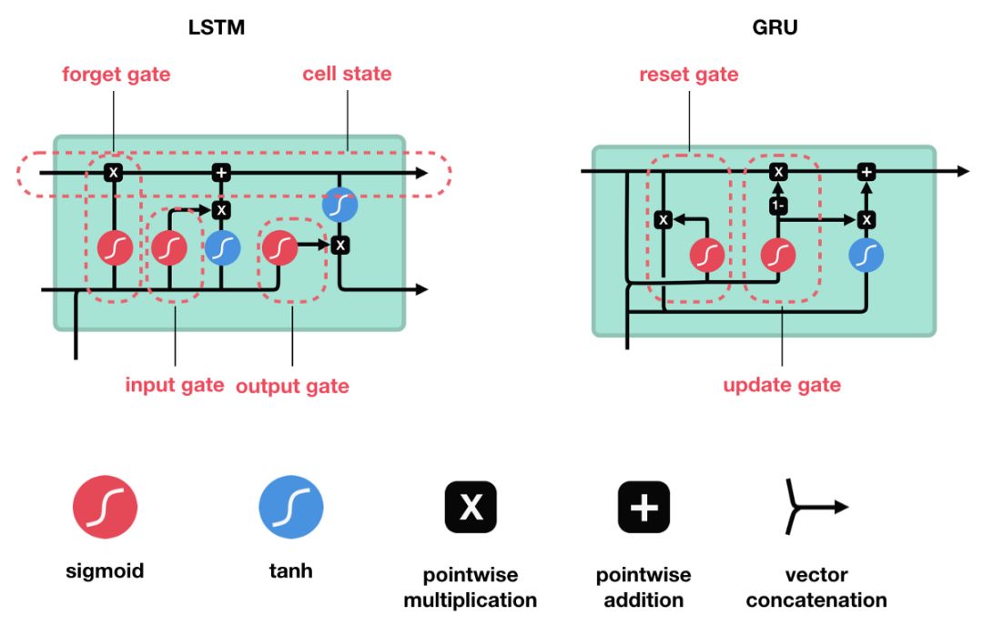 GRU 的张量运算很少,因此与 LSTM 相比,它的训练速度要快一些。目前还不清楚哪一个更好,研究人员和工程师通常都根据自己实际情况选择二者之一。