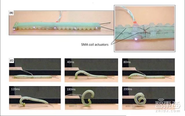 MIT网眼蠕虫机器人,看起来像蚯蚓,具有无线功能,由镍和钛制成的金属线制造“人造肌肉”。该机器人油麻省理工学院、哈佛大学和韩国首尔大学共同研究设计的。通过收缩身体体节,在各种表面上爬行,看起来更像一条蚯蚓。这种几乎全用软材料制造的机器人有很强的弹力。即使被踩到或用铁锤重击,它也不会受伤,仍会继续向前缓慢移动。