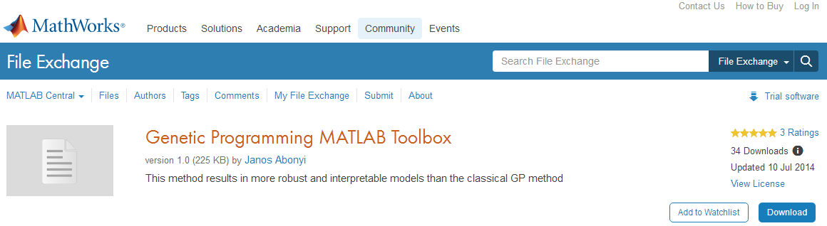 http://cn.mathworks.com/matlabcentral/fileexchange/47197-genetic-programming-matlab-toolbox