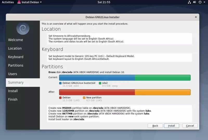 对于 Debian Buster 的 Live 版,Debian 引入了 Calameres 安装器来替代老的 Debian-installer。Debian-installer 比 Calameres 功能更多,但对于初学者,Calameres 相对于 Debian-installer 提供了另外一种全新的安装方式。安装过程的截图: