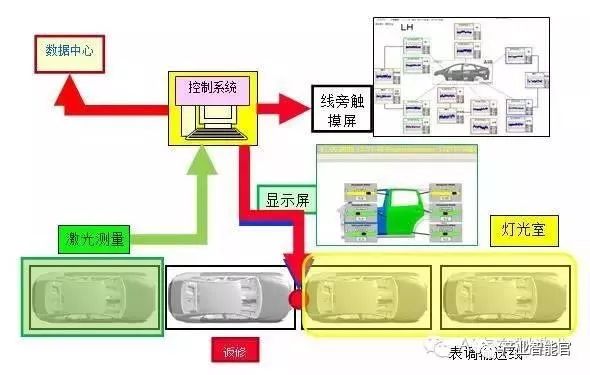 在生产线的特定位置,设置激光测量系统,对车身的关键控制点进行测量,并将数据实时传输到数据分析系统,并能将发现的问题及时进行报警。
