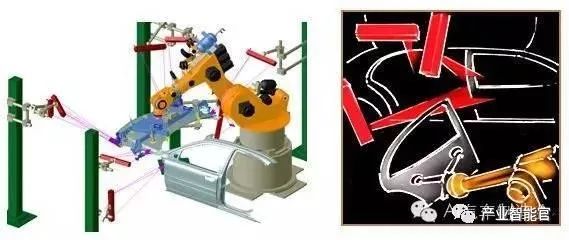 在现场自动化工位,如顶盖安装、机器人激光焊接、门盖的安装以及自动涂胶等工艺,都需要先进行精确定位,机器人对定位数据进行分析后进行正确的操作,以达到工艺的稳定性。此种定位采取激光测量的方式,通常采用固定方式。