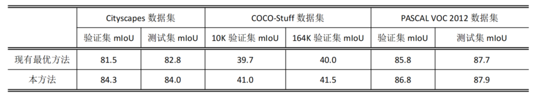 表 1 本方法与现有最优语义分割方法比较