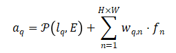 通过adaption的特征向量,我们在gathering stage中增强每个像素的特征向量,计算如下。