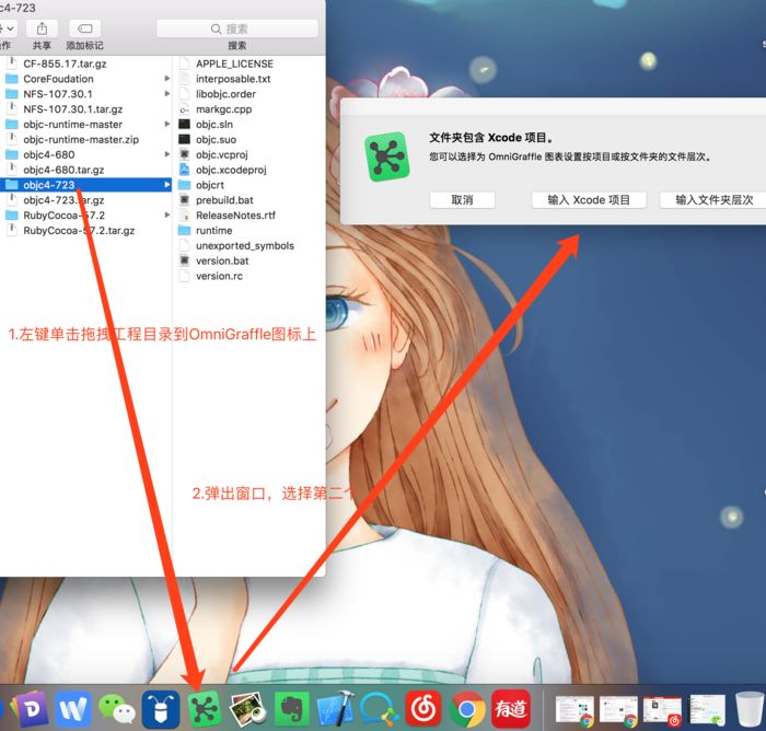 左键单击工程目录拖拽至OmniGraffle的图标上。
