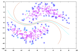 基于核的算法中最著名的莫过于支持向量机(SVM)了。基于核的算法把输入数据映射到一个高阶的向量空间, 在这些高阶向量空间里, 有些分类或者回归问题能够更容易的解决。常见的基于核的算法包括:支持向量机(Support Vector Machine, SVM), 径向基函数(Radial Basis Function ,RBF), 以及线性判别分析(Linear Discriminate Analysis ,LDA)等