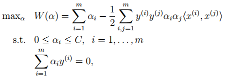 而这个函数可以用常用的优化方法求得α,进而求得w和b。