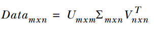 SVD将矩阵分解为三个矩阵的乘积,公式如下所示: