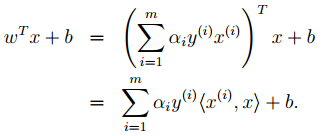 5. 按照道理,svm简单理论应该到此结束。不过还是要补充一点,即在预测时有: