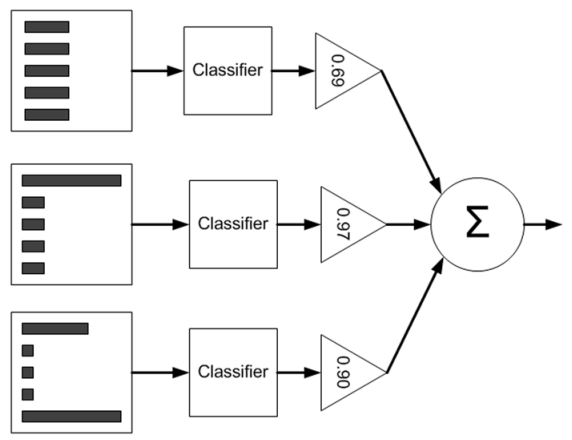 4. 循环步骤1,2,3来继续训练多个分类器,只是其D值不同而已。