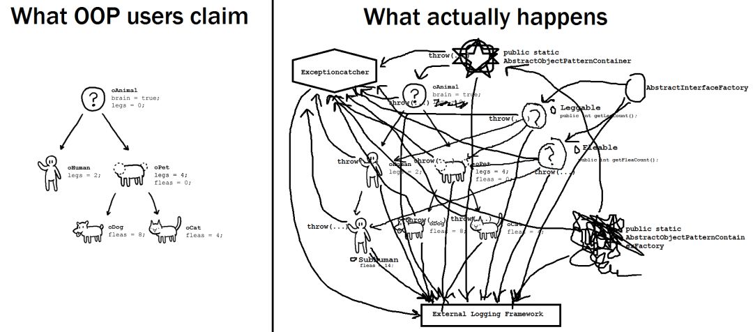 许多人批评面向对象编程(OOP),包括大名鼎鼎的软件工程师。就连OOP的发明者本人也猛烈炮轰现代OOP!