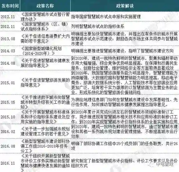 2014年9月,国家发改委联合七部委7发布《关于促进智慧城市健康发展的指导意见》(以下简称《意见》)。《意见》作为战略政策文件,为中国的智慧城市建设确立了基本原则,包括应用智慧技术推动综合公共服务,推动数字平台的数据收集与分享,促进执法(如通过智慧技术促进依法纳税),推动电子政务,完善群众诉求表达和受理信访的网络平台等。《意见》强调,智慧城市的建设必须以人为本、务实推进;因地制宜,以城市发展需求为导向;市场为主,同时杜绝不必要的行政干预。