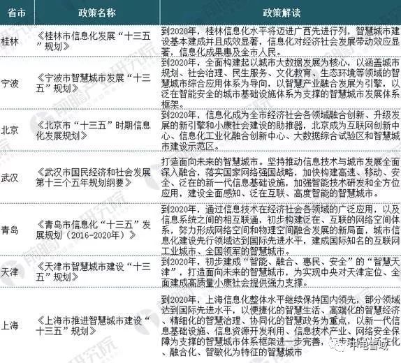 中国政府将“智慧城市”定义为“运用物联网、云计算、大数据、空间地理信息集成等新一代信息技术,促进城市规划、建设、管理和服务智慧化的新理念和新模式”。总体而言,关于智慧城市的政策分为四类。第一类是智慧城市建设的具体规划与政策,包括政府长期规划、建设方案、指导意见、项目管理方法等。第二类是在政府的国民经济社会信息化建设总体规划中专门列出的智慧城市政策。第三类是“城市信息化建设”或“数字城市建设”的相关政策,这些项目与智慧城市建设目标类似。第四类是由多个中央部委联合开展的试点项目,重点关注智慧城市建设或相关基础设施。