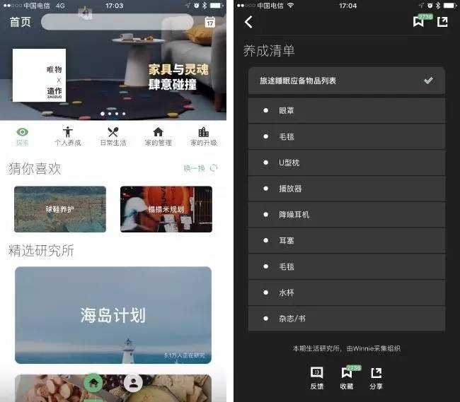 而在功能上,2.0 版加入了全新的「养成清单」,它们在不同的生活技巧下「藏」着。这些清单帮你罗列出所有与当前技巧或建议相关的物品,例如你想知道「如何在旅途中保证睡眠质量」,唯物的清单就帮你备齐了从颈枕、耳塞,到毛毯、水杯所有物品。无论是提前购买,但是出门前的准备,这个清单都能帮你更好地学习唯物内的各种文章,你再也无需一条条自己筹备了。