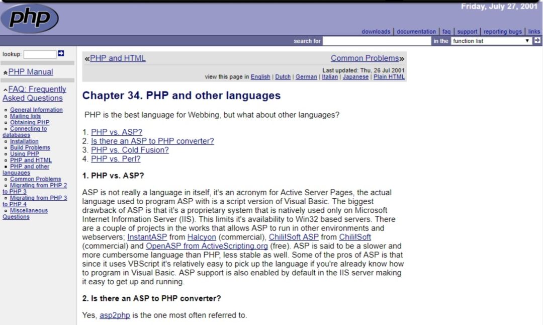 上面虽然是程序员的玩笑梗,但“PHP 是最好的语言” 这句话最早可能出自 2001 年 7 月的 PHP 官方文档。
