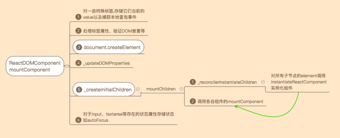 在ReactMount.js中, mountComponentIntoNode函数执行了组件实例的mountComponent, 不同的组件实例有自己的mountComponent方法, 做的也是不同的事情. (源码我就不上了, 太TM…)