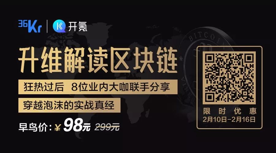 ② 2月16日前扫描下图二维码,抢购36氪与8位业内大咖联合重磅打造的区块链线上课程《狂热过后:升维解读区块链》,享受超低早鸟价!原价299元的课程,早鸟价只售 98 元!