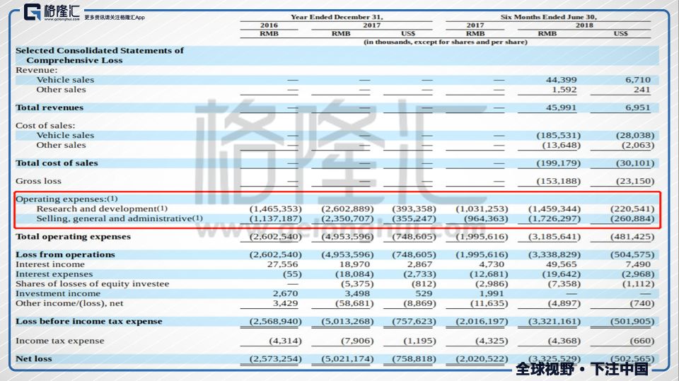 蔚来汽车的招股书显示,蔚来汽车在2018年上半年净亏损5.026亿美元,加之其在2016年及2017年两年间共计75.9亿元人民币的亏损额度,蔚来汽车累计亏损金额已经达到109.2亿人民币。而今年上半年的营收尚不足700万美元。