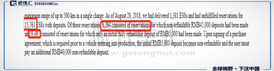 根据公司最新公布的招股书,截至今年8月28日,蔚来汽车的订单总数为17142辆,包括已交付的1381辆,和未交付的15761辆。这15761辆中,6264辆为已缴纳45000元押金的不可退款订单,其余的9497辆为缴纳5000元押金的可退款订单。