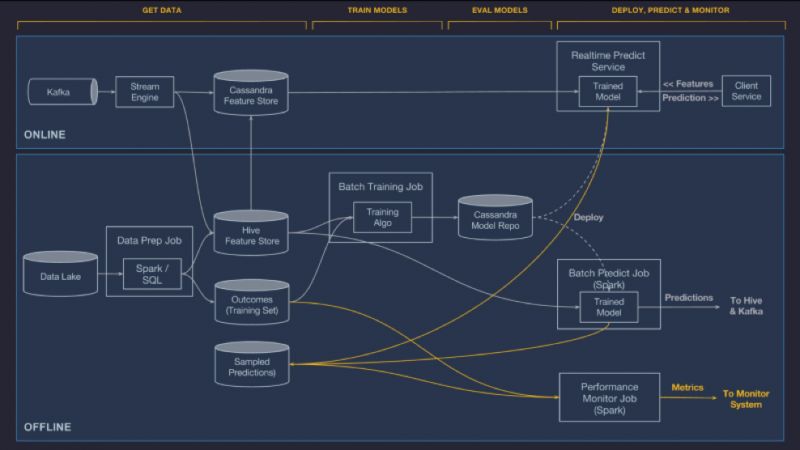 Michelangelo:它是Uber的机器学习平台,其包括在Uber所分析的数据的数量及范围内建设、部署和运营机器学习解决方案。
