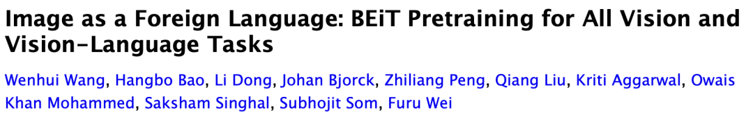 2022年8月31日,相关论文以《把图像视为外语:适用于所有视觉和视觉-语言任务的BEiT预训练方法》(Image as a Foreign Language: BEiT Pretraining for All Vision and Vision-Language Tasks)为题发布在预印本平台 arXiv [1]。