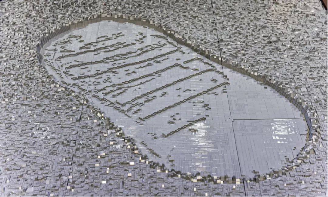◈ 乐高“超级品牌日——超级探索力”活动现场用7.2万块乐高颗粒拼搭成的巨型登月足迹模型