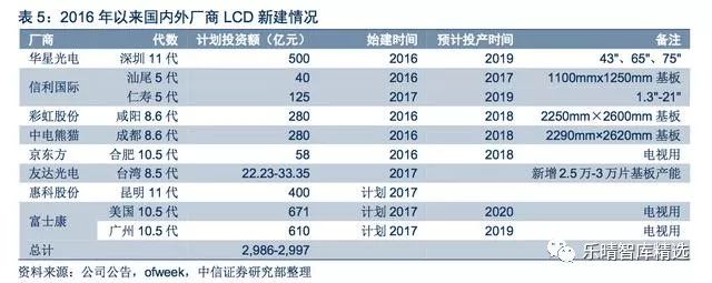 国内厂商方面,京东方、深天马、华星、和辉光电、信利等在内的大陆厂商投资计划总计已达2,880亿元;国外厂商则由三星、LGD主导,2016年以来计划投资额已经达到3,189亿元。