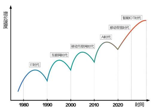 近40年以来,技术社会的演进经历了四大形态:IT信息时代、互联网时代、移动互联网时代、AI时代。现在正处于一个三浪叠加的时代,即AI时代伴以移动宽网技术和智能IOT共同发展。