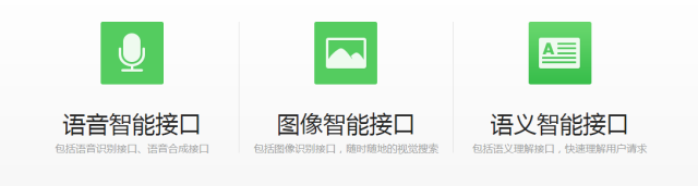微信AI通过微信开放平台向第三方开发者提供语音识别、语音合成、图像识别和语义分析等智能接口,通过人工智能技术助力第三方应用的交互升级和技术创新。目前已在滴滴打车、QQ音乐、腾讯地图等多个场景中应用。滴滴打车通过语音智能接口,让用户在各种场景中,更加简单便捷地获得服务;QQ音乐通过语音智能接口快速识别用户需求;腾讯地图接入微信语音智能接口,让用户在各种环境中都能快速进行地点和服务的查找。