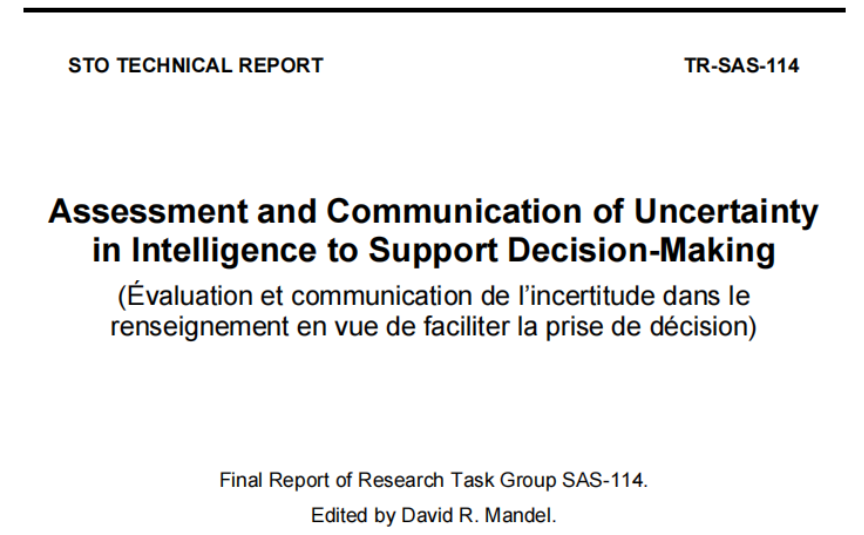 便捷下载,请关注专知人工智能公众号(点击上方蓝色专知关注) 后台回复“acu384” 就可以获取《北约384页技术报告《评估和沟通情报中的不确定性以支持决策》》专知下载链接