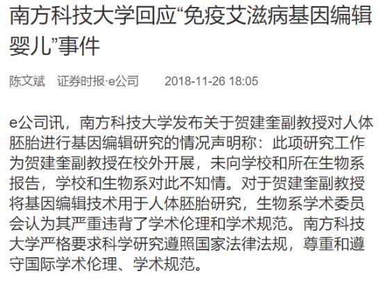再过十几个小时,美国的洞察号探测器就要抵达火星了,这是地球文明的又一次真正的进步。在这样的时刻,这位中国的贺教授居然用这种有悖人伦的方式给这个世界造了两个婴儿,还洋洋得意地满世界发视频,这简直是文明的耻辱!当年纳粹在集中营做人体试验,也还没有高调成这个样子!