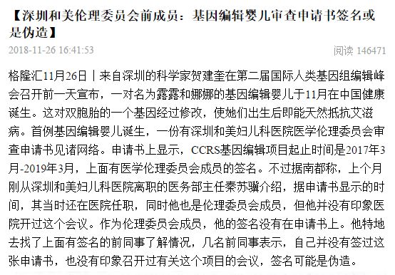 究竟那份文件是真是假,究竟这件事是不是贺建奎的个人行为,相信很快就能真相大白,但笔者今天想说的不是这个。