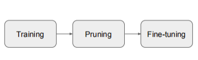 的思想,即将网络中某些对输出结果贡献不大的参数进行剪除。这种方法可以大大提高模型运行速度,但同时会对模型准确度有一定影响。经过近 30 年的研究,现在的神经网络剪枝技术可以减少训练网络时 90% 以上的参数,以减少存储需求,提高模型的推理计算性能。通常的网络剪枝步骤如下图 1 所示,首先训练一个大的、过参数化的模型,然后根据一定的准则对训练过的模型参数进行修剪,最后将修剪过的模型微调以获得失去的精度。